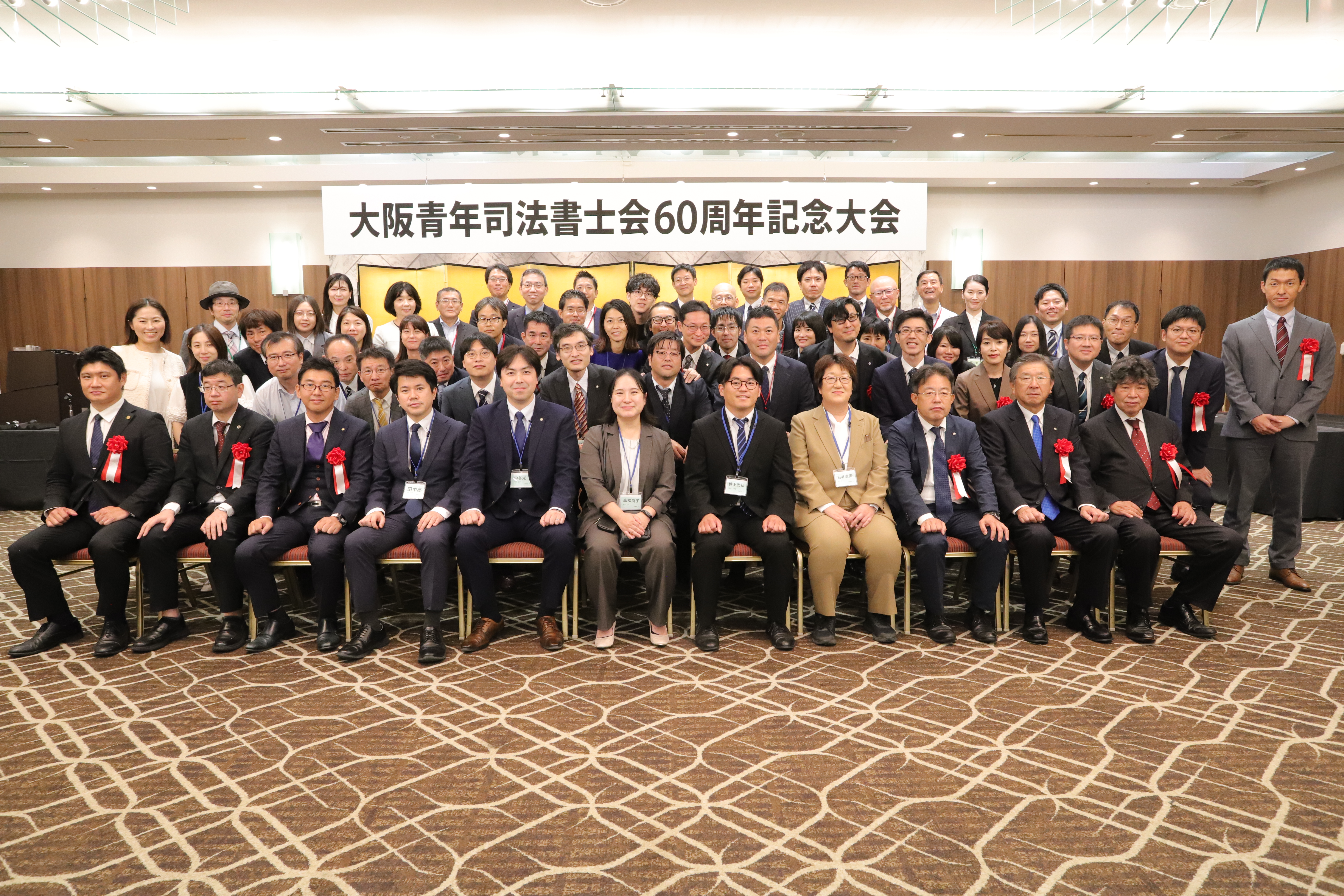 大阪青年司法書士会は2025年に60周年をむかえ、令和7年10月4日(土)日航ホテルにて「大阪青年司法書士会60周年記念大会」を開催しました。大会には来賓を含め70名が参加し、この60年間を振り返るとともに、今後70周年80周年と続けていけるようにと想いを強める大会となりました。